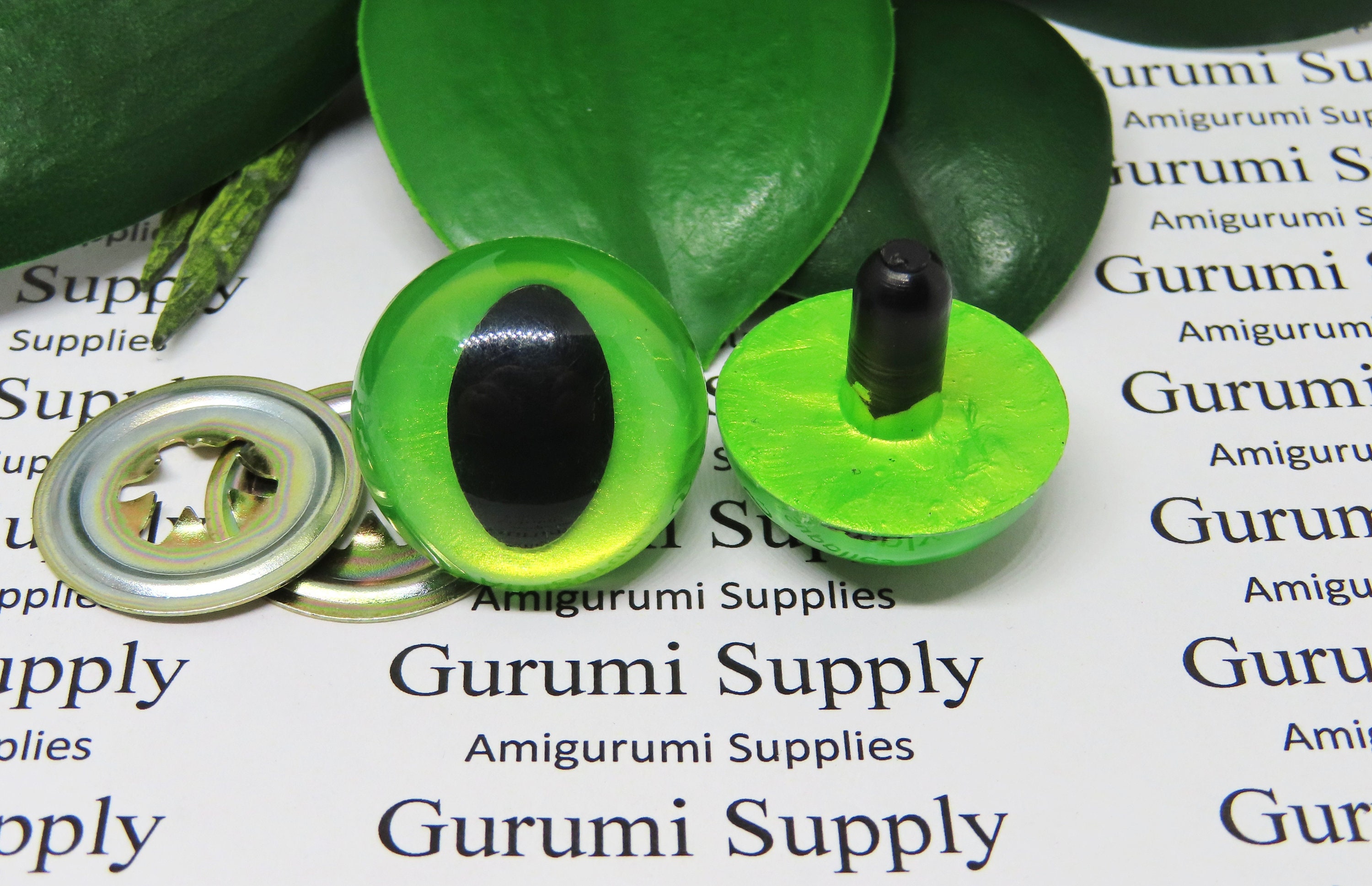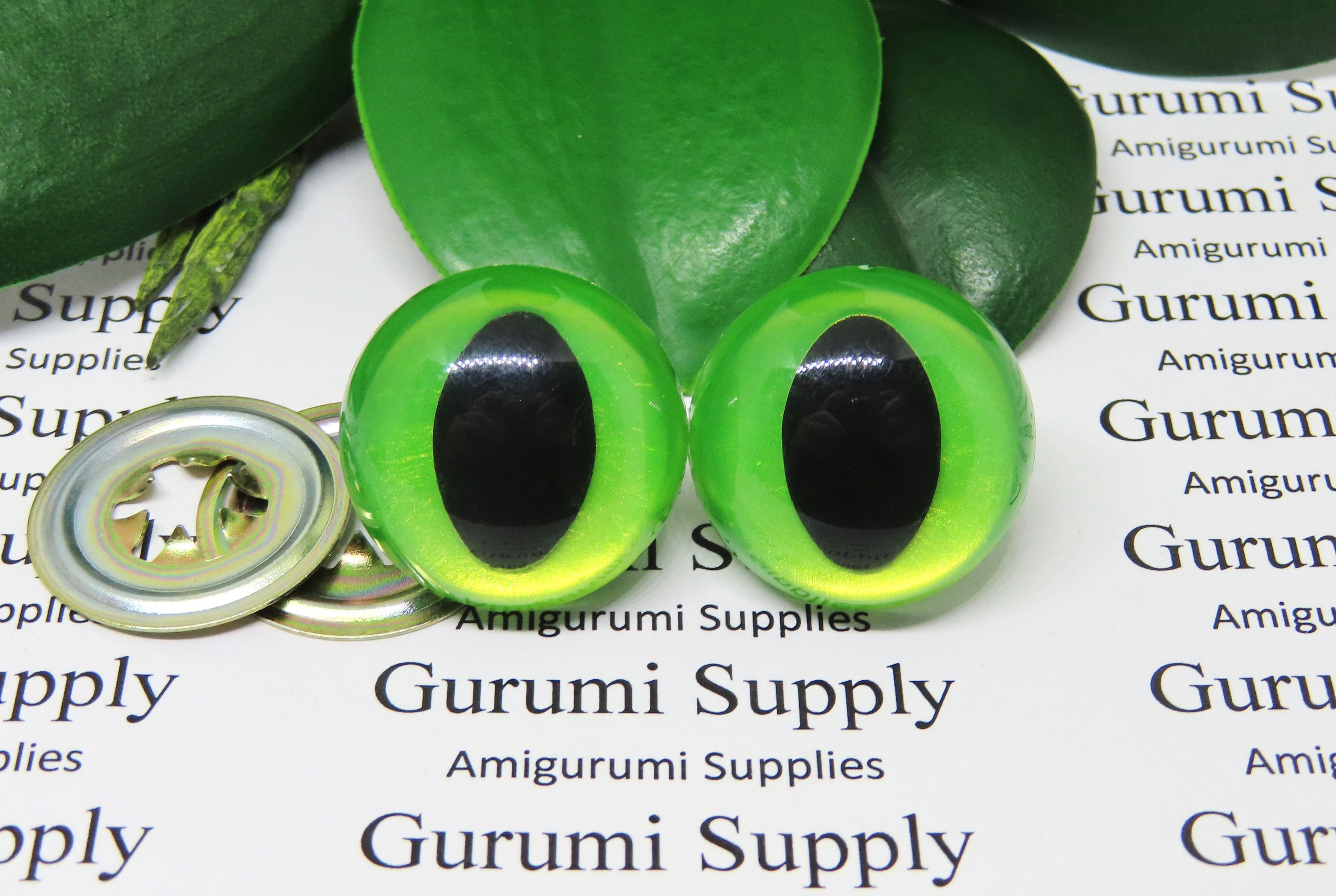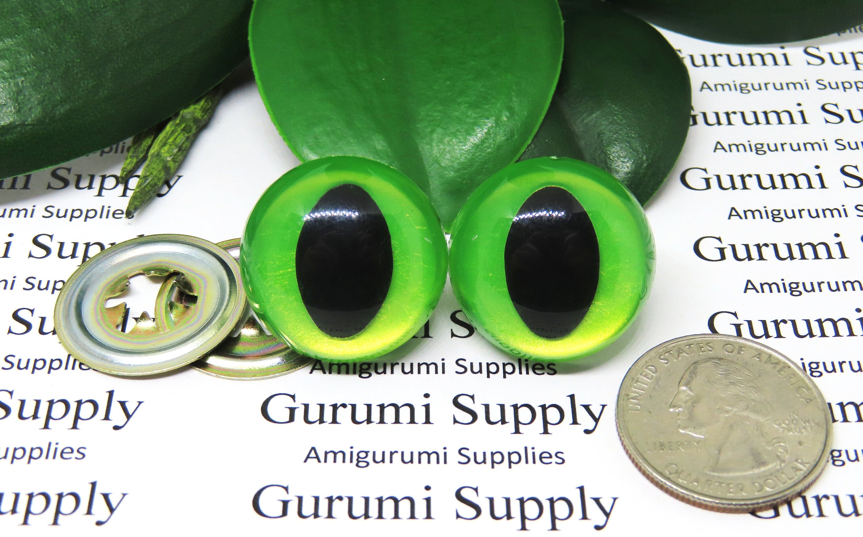 24mm Hand Painted Metallic Yellow-Green Color Iris Black Pupils Round Cat Style Safety Eyes and Washers: 1 Pair – Dragon / Amigurumi /Animal
