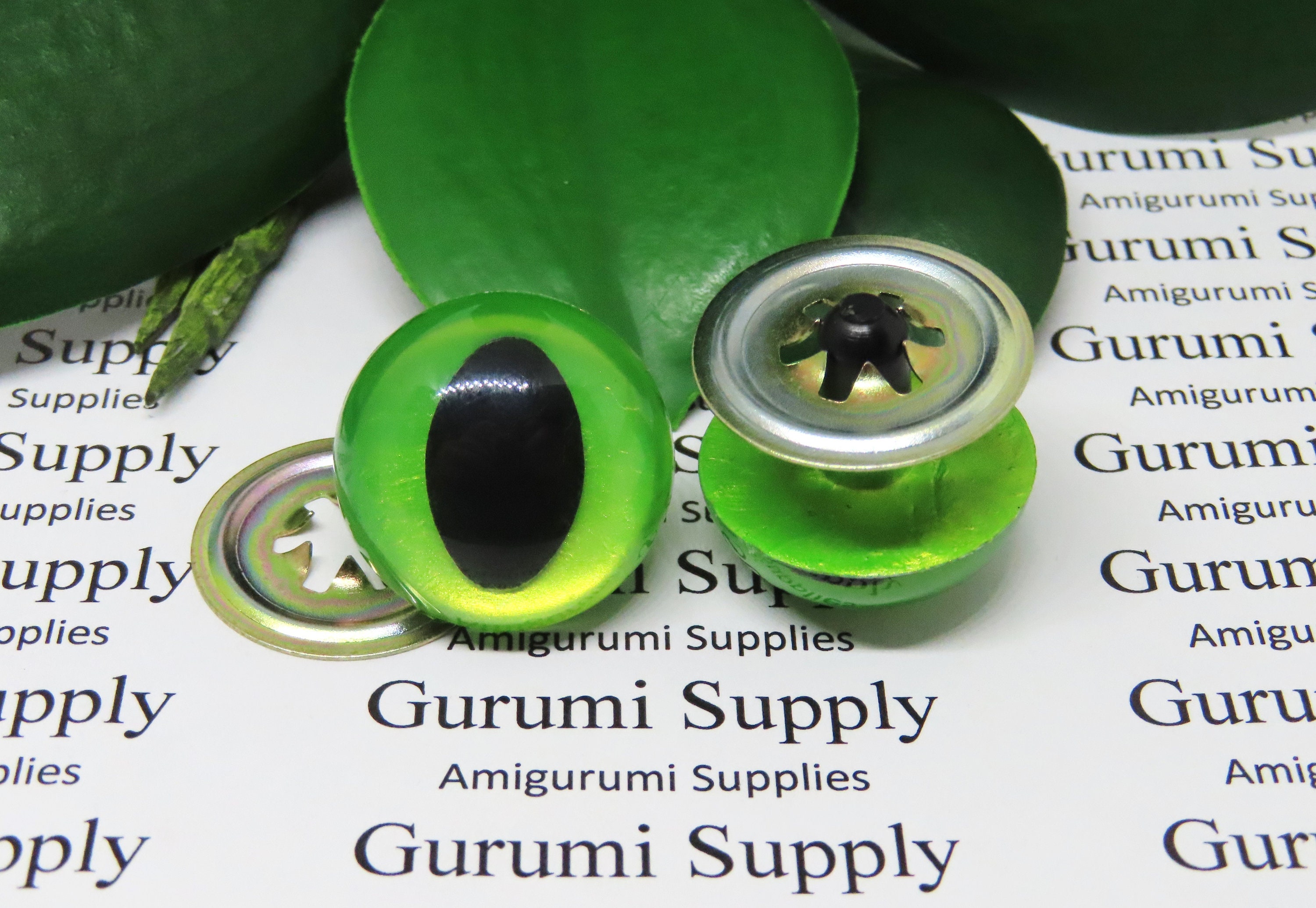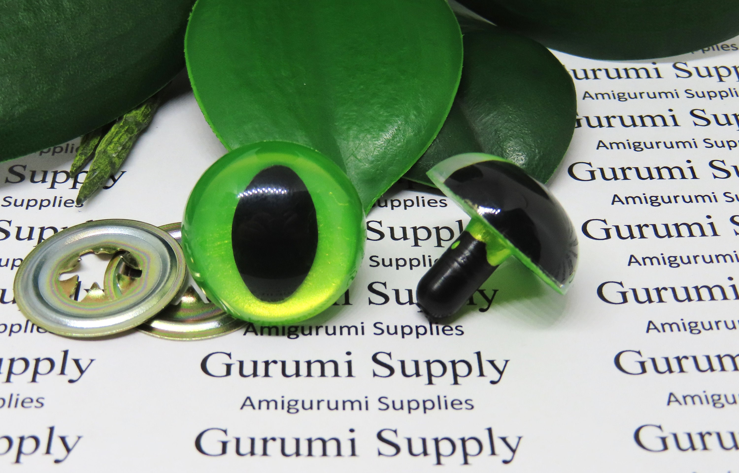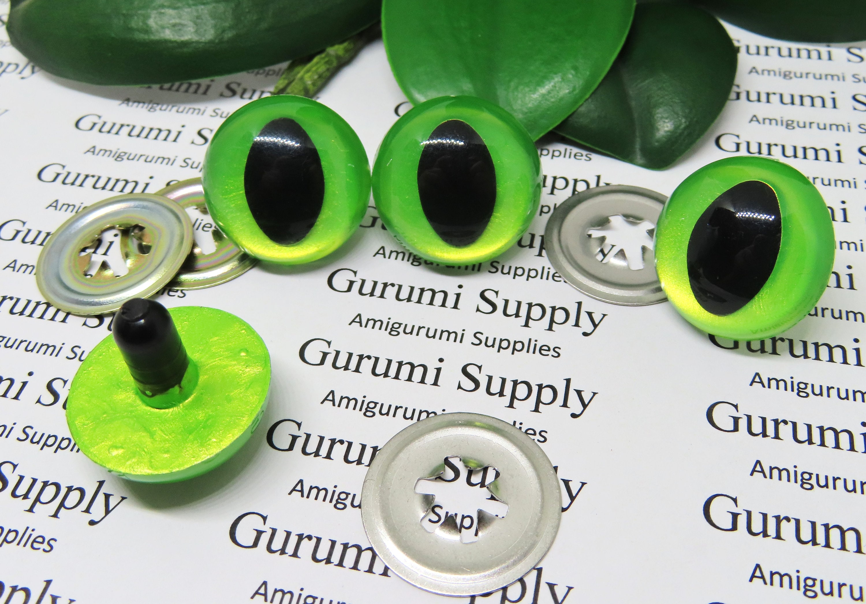 24mm Hand Painted Metallic Yellow-Green Color Iris Black Pupils Round Cat Style Safety Eyes and Washers: 1 Pair – Dragon / Amigurumi /Animal