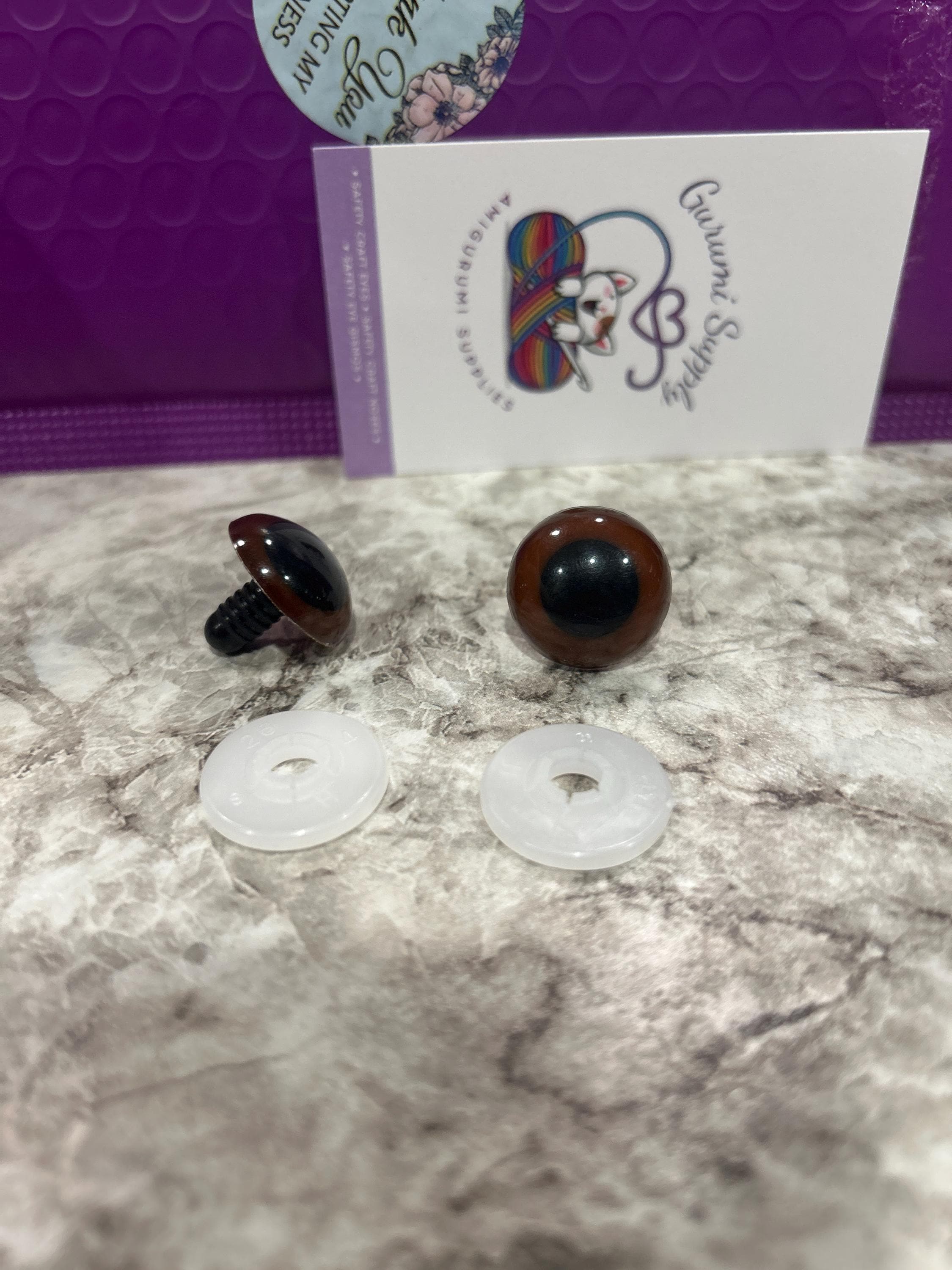 20mm Dark Brown Iris Black Pupil Round Safety Eyes and Washers: 1 Pair – Paint Free - Doll /Amigurumi / Animal / Plushies / Creations