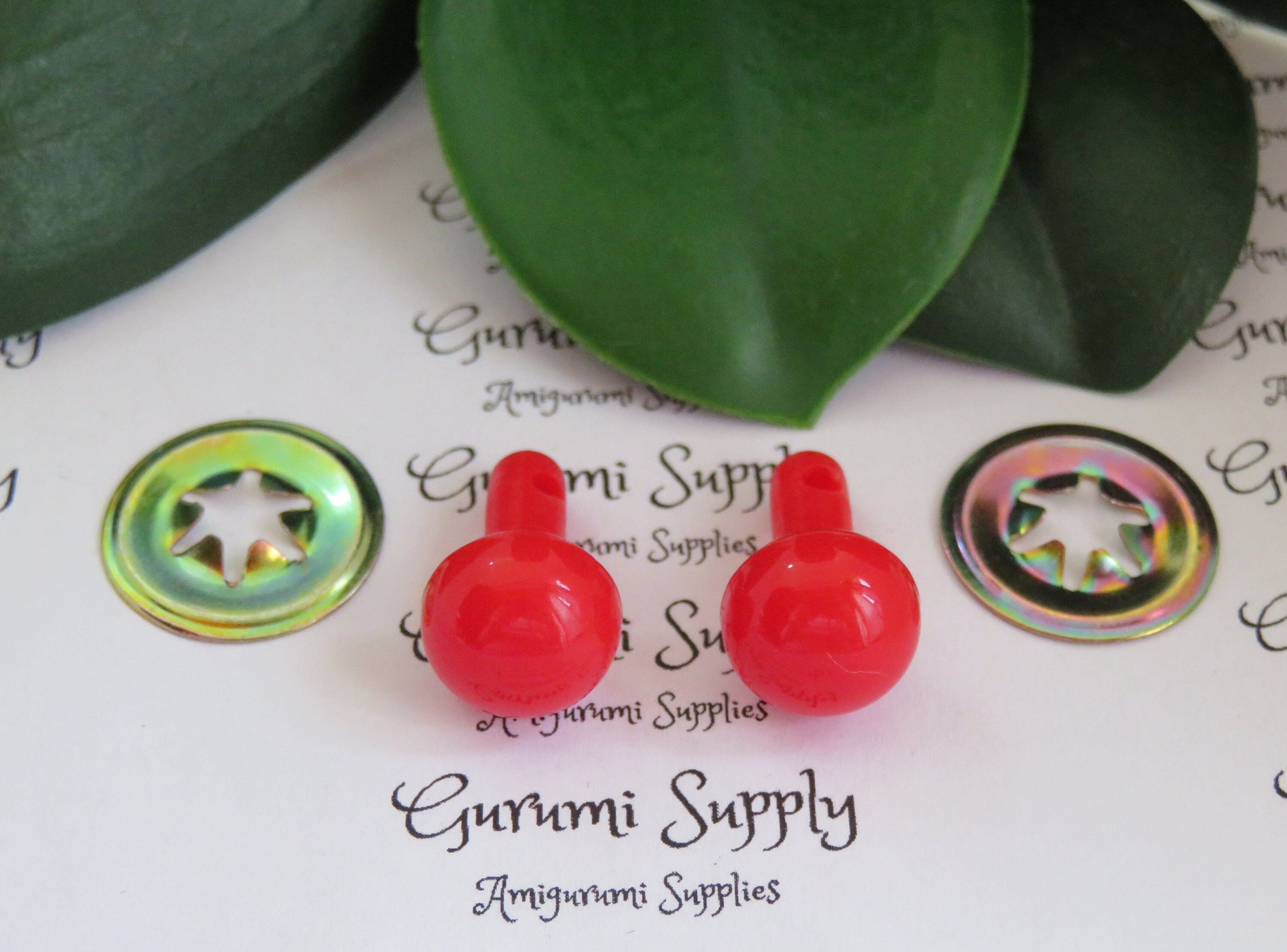 12mm Solid Red Ball Round Noses with Metal Washers – 2ct/ Sense of Smell/ Amigurumi/ Clowns/ Animals/ Stuffed Creations/ Stuffed Animal Toys