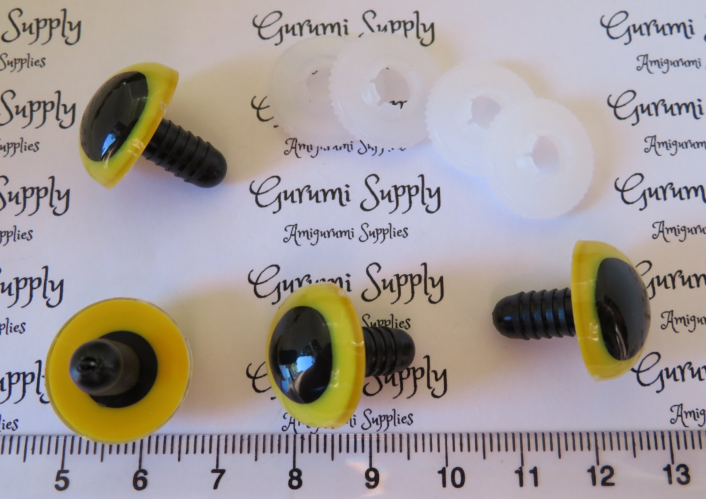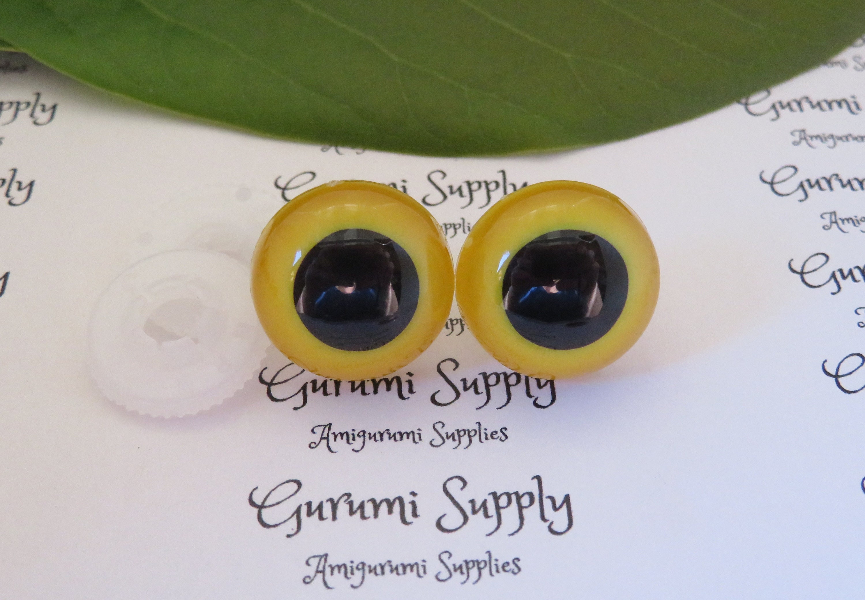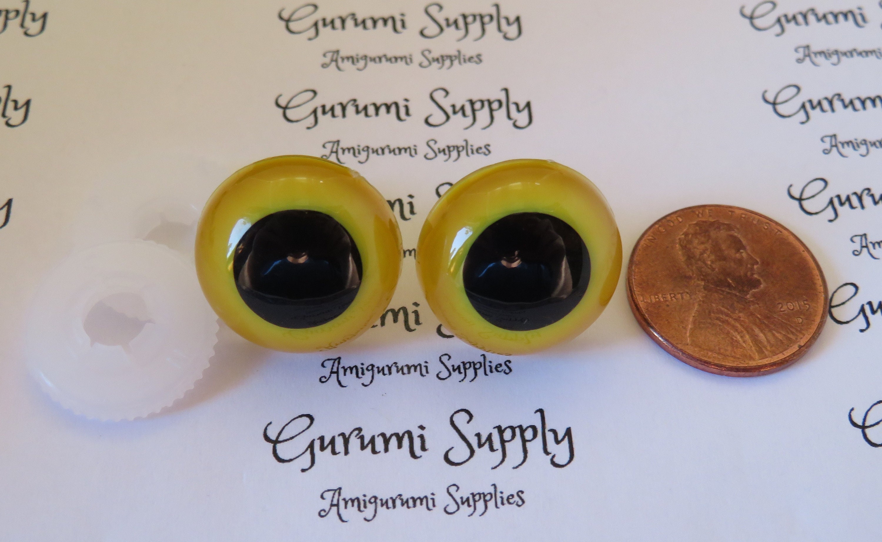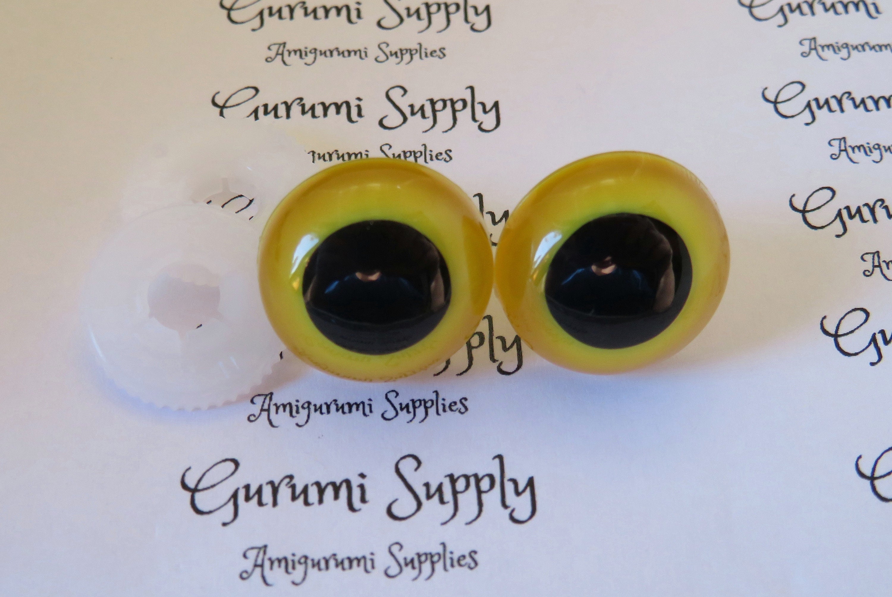 18mm Yellow Iris Black Pupils Round Safety Eyes and Washers: 2 Pairs – Amigurumi / Animal / Toy / Doll / Crochet / Knit / Craft Supplies