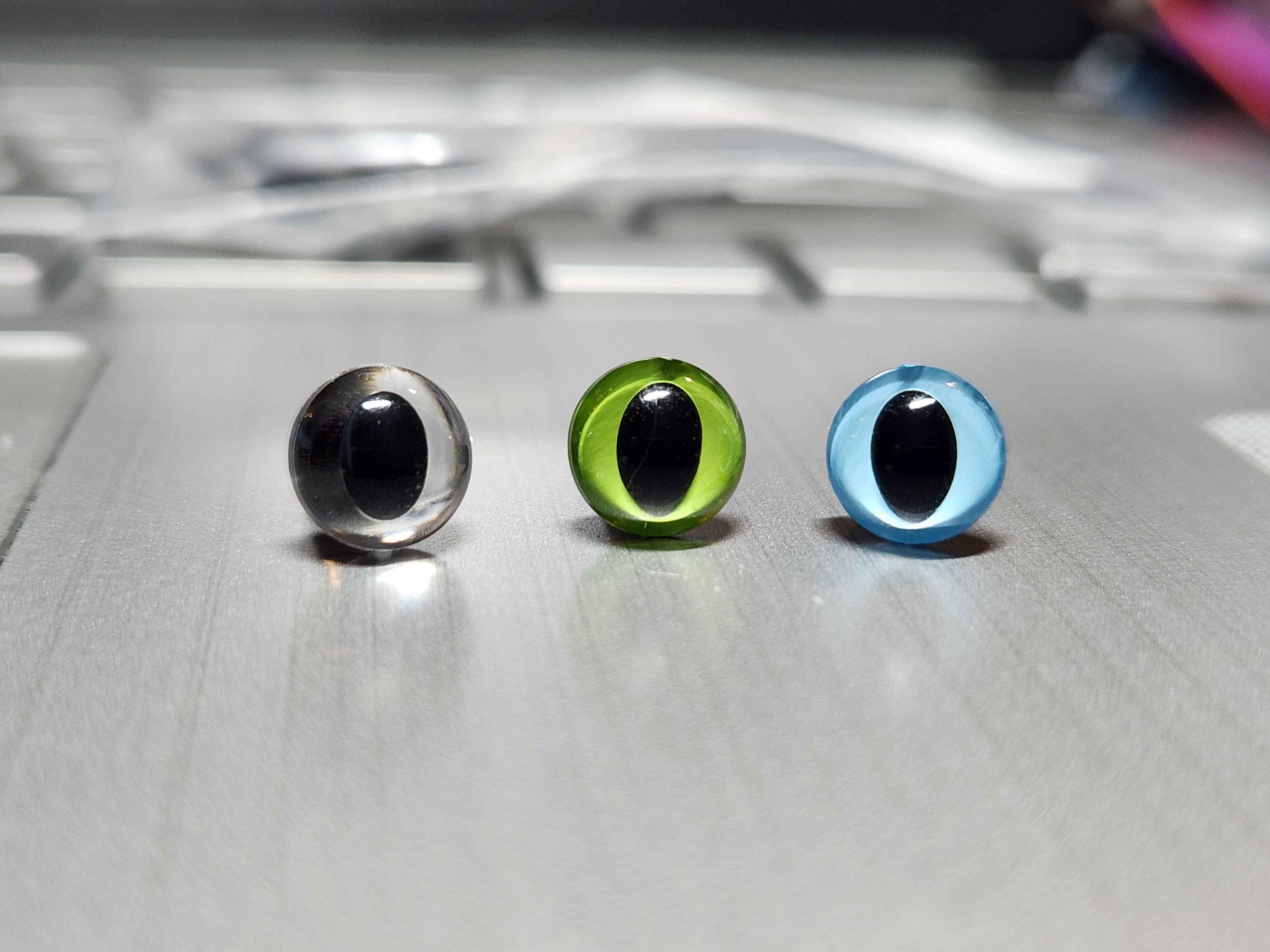 If you are looking for a unique style for your creation, check out these translucent clear colored cat style safety eyes!
