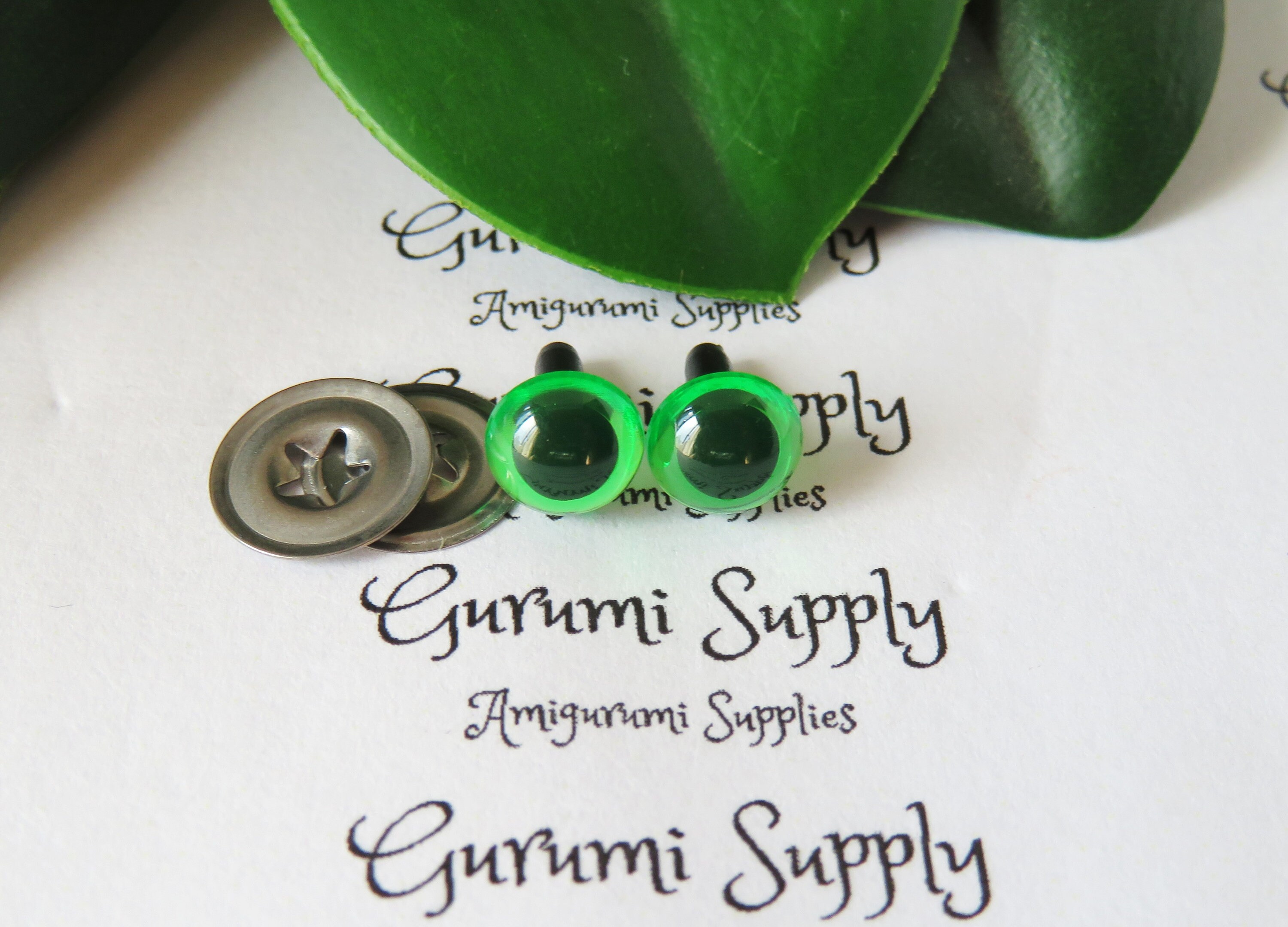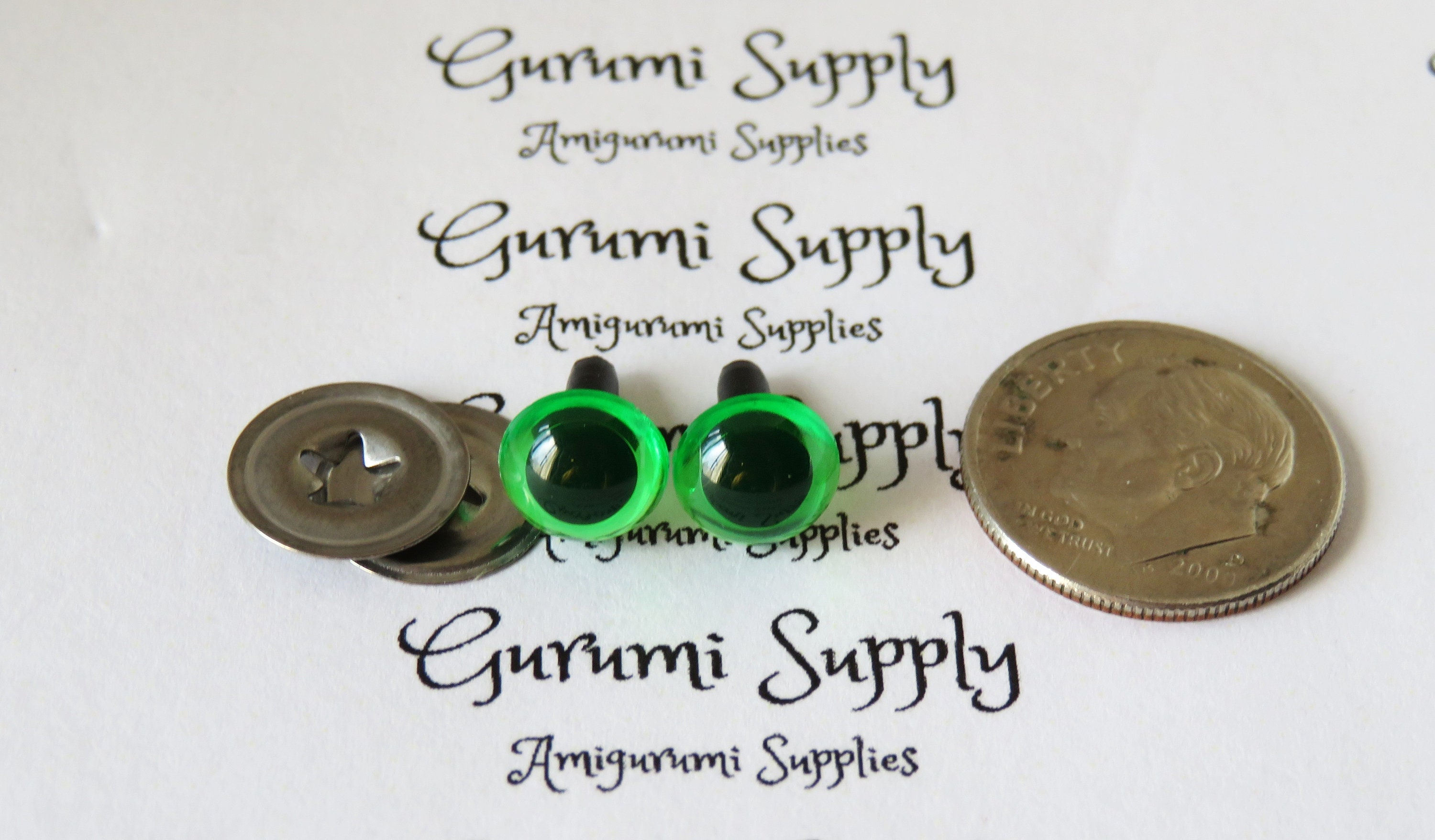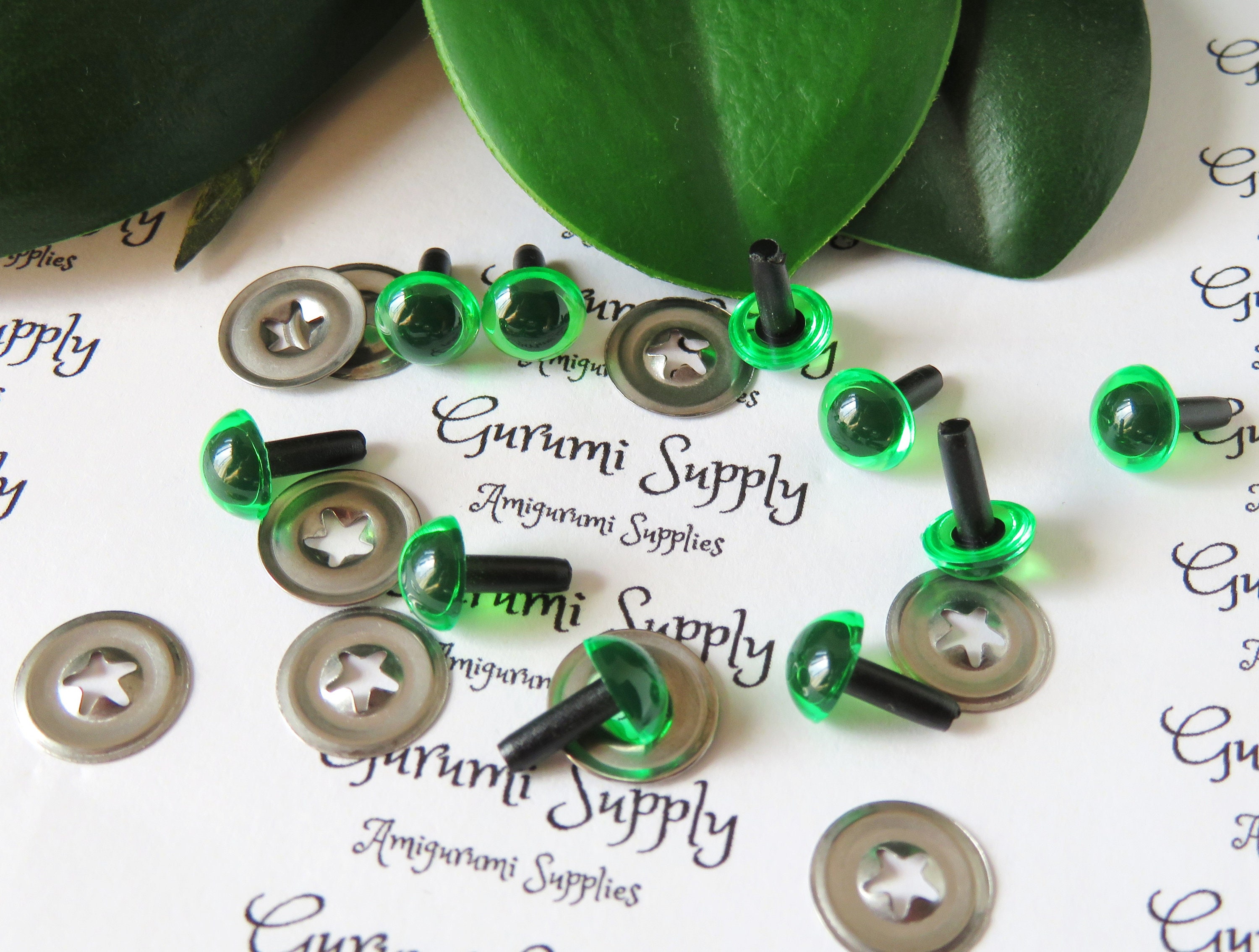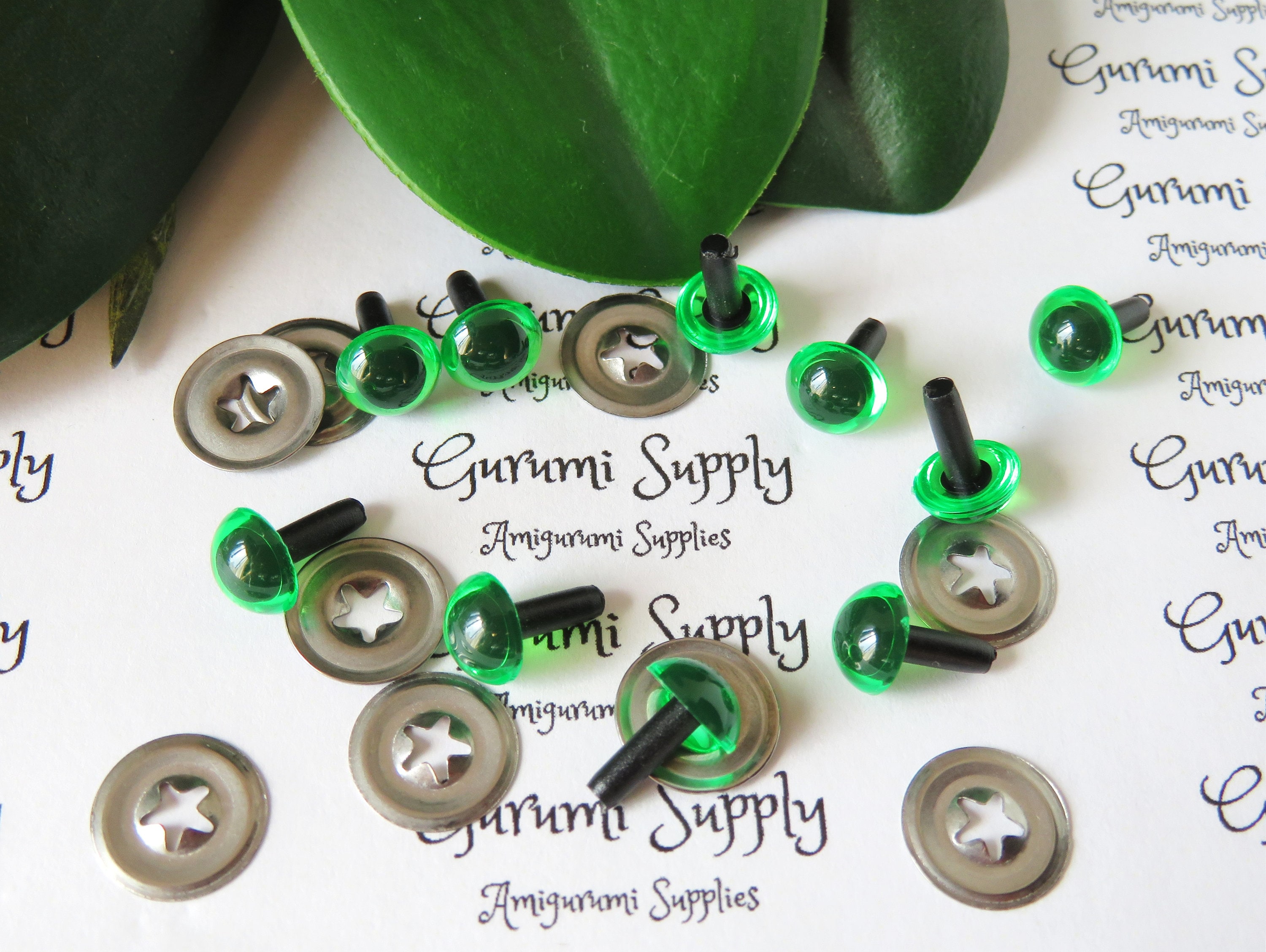 7.5mm Translucent Green Iris Black Pupil Round Safety Eyes and Washers: 5 Pairs - Dolls / Amigurumi / Animal / Stuffed Creations / Crochet